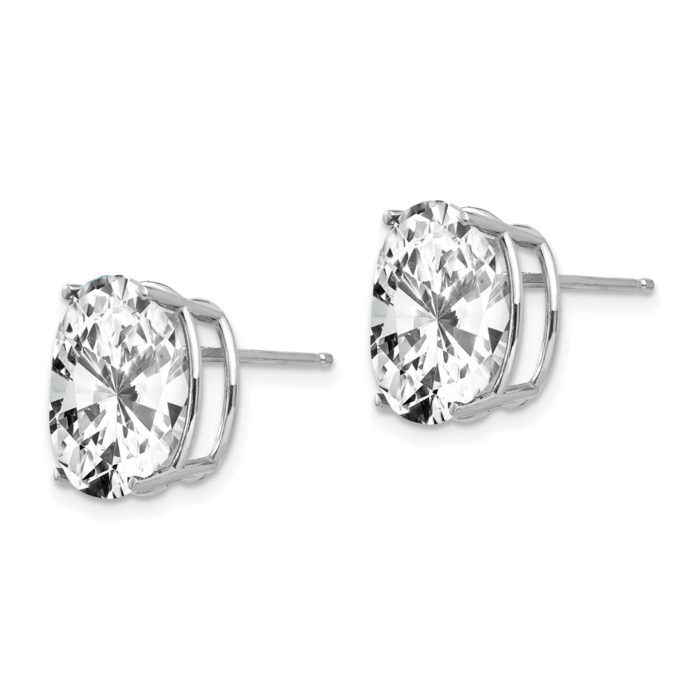 14k White Gold Cubic Zirconia Oval Stud Earrings