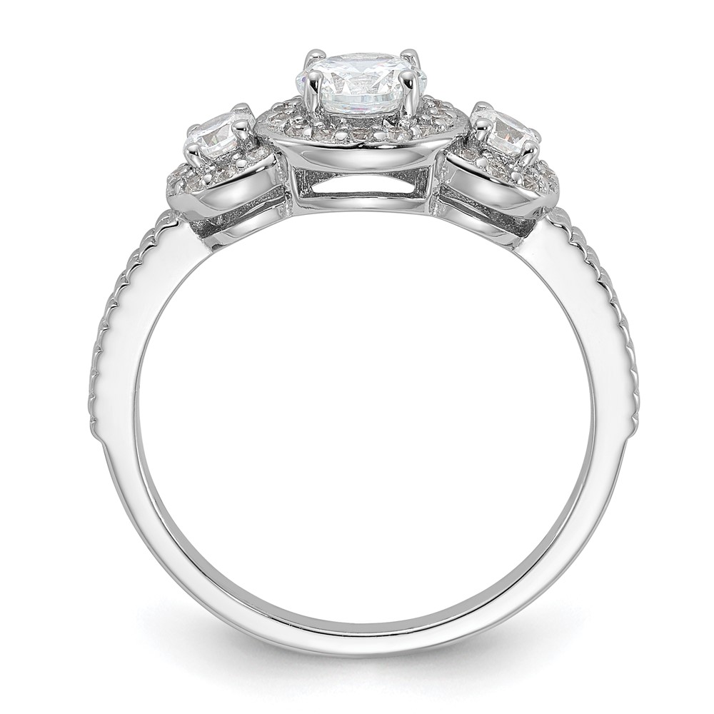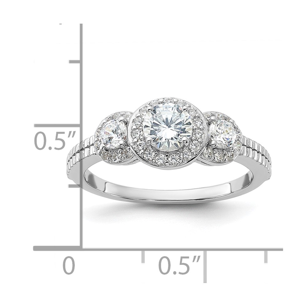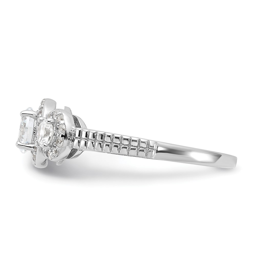 Cheryl M Sterling Silver Rhodium-plated Brilliant-cut CZ 3-Stone Halo with Textured Side Ring QCM1656-7