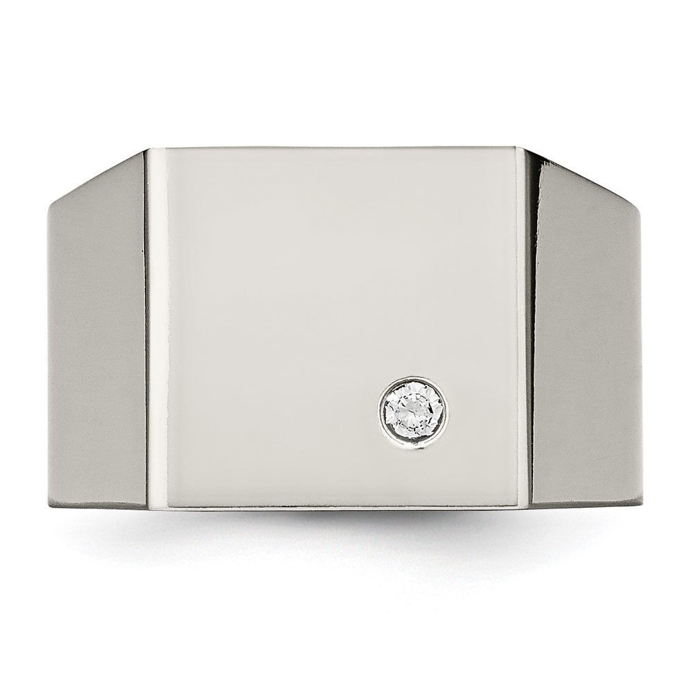 Chisel Titanium Polished CZ Signet Ring TB426-12