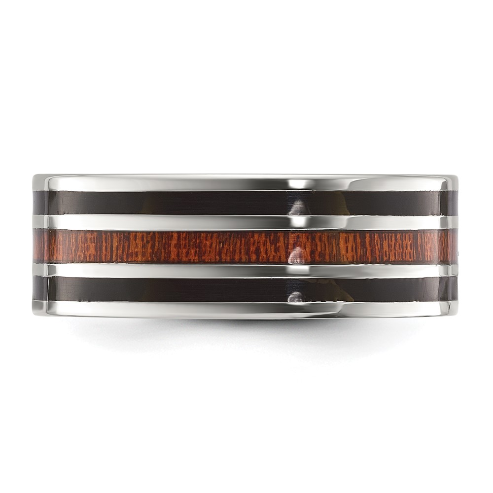 Chisel Titanium Polished with Black Resin and Wood Inlay 8mm Band TB538-12