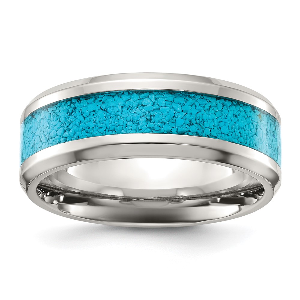 Chisel Titanium Polished with Turquoise Inlay 8mm Band TB537-13
