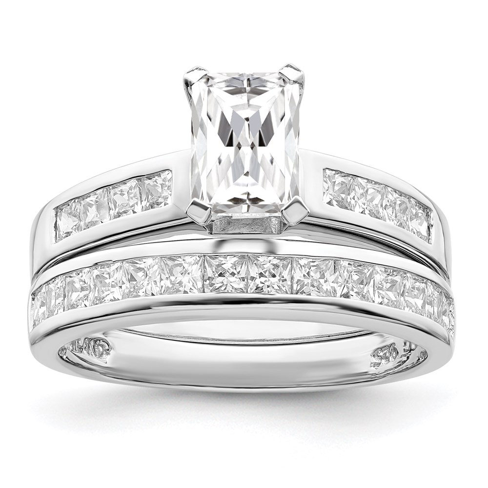 Sterling Silver Rhodium-plated 2-Piece CZ Size 6 Wedding Set Ring