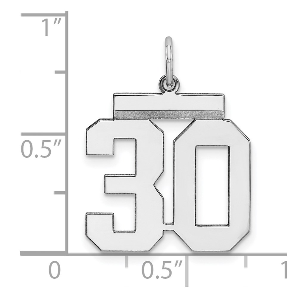 Sterling/Silver Rhodium-plated Polished Number 30 Charm