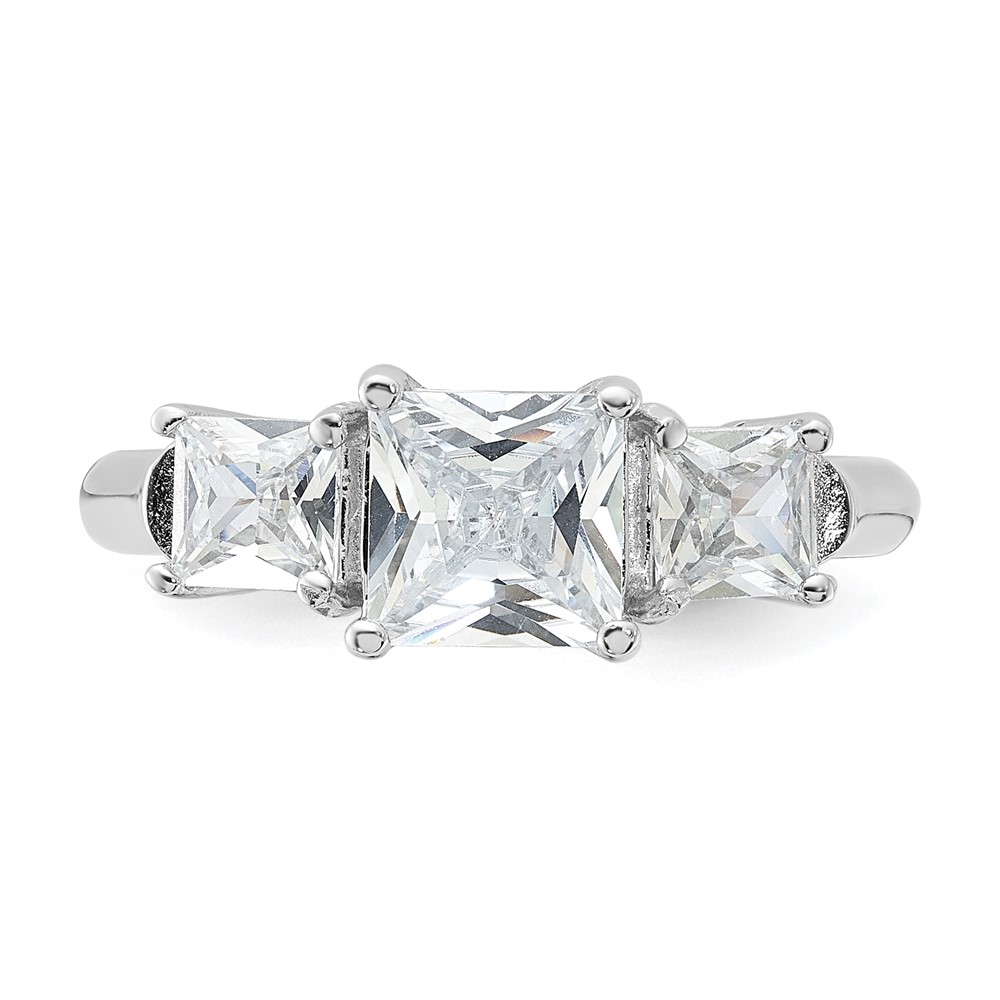 Sterling Silver Rhodium-plated Three Stone CZ Ring